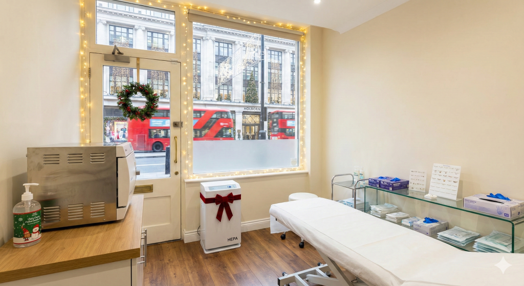 Unlike seasonal pop-up piercing kiosks appearing in Oxford Street and Covent Garden shopping centers, our Holborn clinic maintains our strict medical-grade protocols year-round. Now, to celebrate this festive season and welcome families safely back to wellness practices, we’re offering two special holiday promotions designed with London’s health-conscious families in mind.